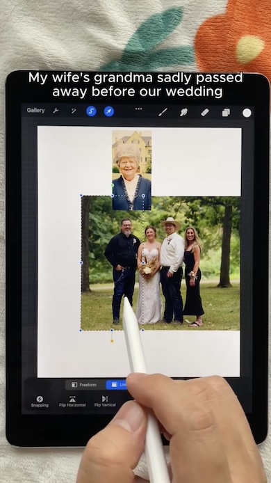 家族写真に、故人をあたかもその場にいたかのように合成する編集術がTikTokで話題です。動画は記事執筆時点で690万回以上再生され、約8万6000件の“いいね”を集めています。