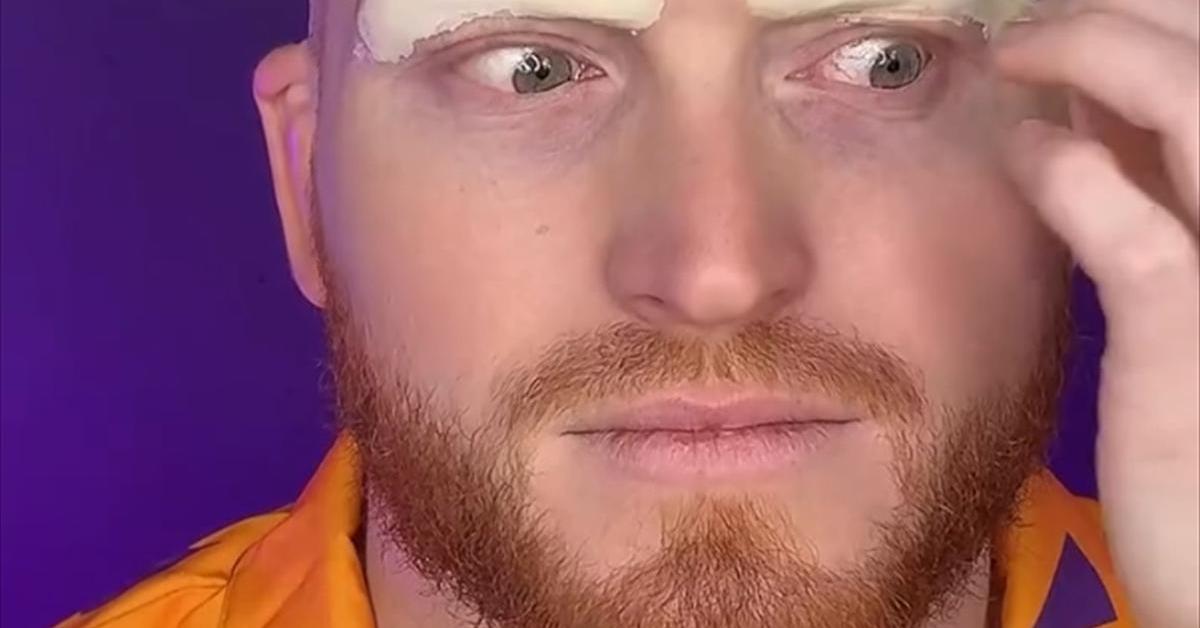 Instagramに動画を投稿したのは、コスプレイヤーでメイクアップアーティストのJo Steel(@artistjodysteel)さん。今回は格闘家の男性をゲストに迎え、元々のスキンヘッド&ひげを活かして亀仙人に変身させます。
