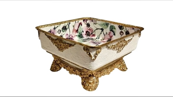 できあがったのは、台座を備えた華やかでエレガントな印象の入れ物。その繊細な仕上がりは美術品のような風格すら感じさせます。これがもとはごく普通のプラスチック容器だったなんて信じられない!