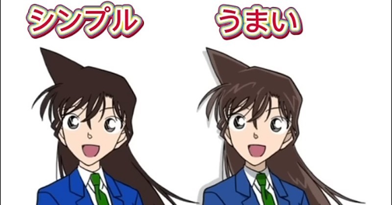 動画で塗っているのは、漫画『名探偵コナン』のヒロイン・毛利蘭の塗り絵です。まずは「シンプル」「うまい」と、簡単な塗り方からより立体感を出した塗り方までを比較。とてもスムーズな色塗りメイキングからすでに絵の才能を感じます。