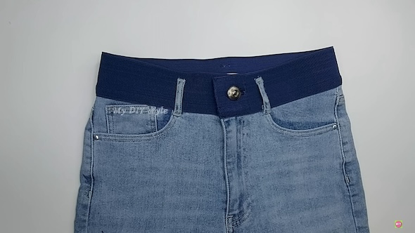 たったこれだけで、ジーンズのウエストを広げる作業が完了! 新しい生地がデザイン上のワンポイントにもなり、見た目も新鮮に生まれ変わりました。