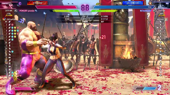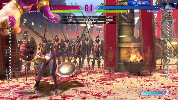 ワンパターンな行動の繰り返しで一方的に勝利したように見える今回の動画ですが、実際相手のザンギエフも何もしていないわけではなく、しばしば投げを空振りさせる行動である「バックステップ」を織り交ぜていることが操作履歴などからも伺えます。しかし、立川さんはそういった選択肢にも対処できるようタイミングをずらした投げを混ぜていたことを明かしており、結果的にさまざまな駆け引きを経て、8連続で投げが決まり続けたという流れだったようです。