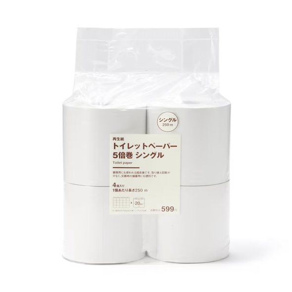 「再生紙トイレットペーパー5倍巻 シングル」(無印良品公式サイトより)