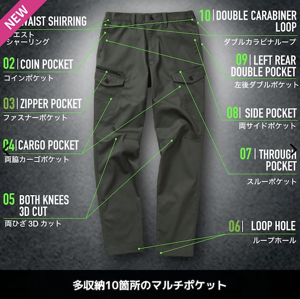注目が集まっているのは、「ワンダーストレッチカーゴパンツ」。伸縮性・丈夫さ・柔らかさを兼ね備えた生地で、さまざまな業種にマッチするデザインと機能性を有しています。