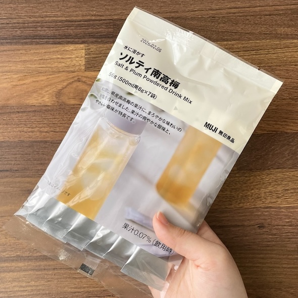無印良品の公式X(@muji_net)が紹介し話題になっているのは「水に溶かす ソルティ南高梅」(390円)。和歌山県産の南高梅果汁と長崎県五島灘の海塩を使用した、爽やかな酸味と優しい塩味が特徴の粉末ドリンクです。