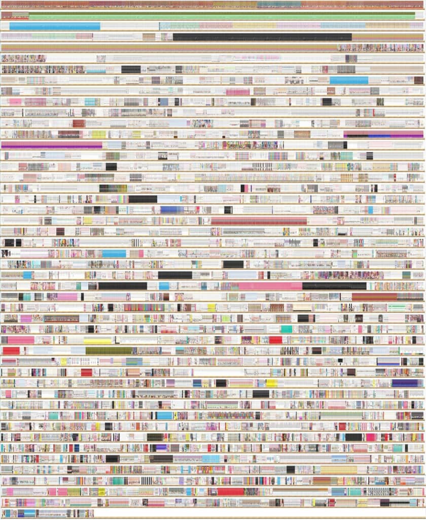 ありがとうございます。実はこれだけの書籍の背表紙を一覧表示する機能がebookjapanにあるわけではなくて、ebookjapanのブラウザ版で表示できる一番小さい(=一番多くの本が表示できる)縮尺で購入済み書籍の背表紙一覧を表示して、それでも一画面には表示しきれなかったので、そうして撮ったスクリーンショットをつなぎ合わせて作った画像なんです。