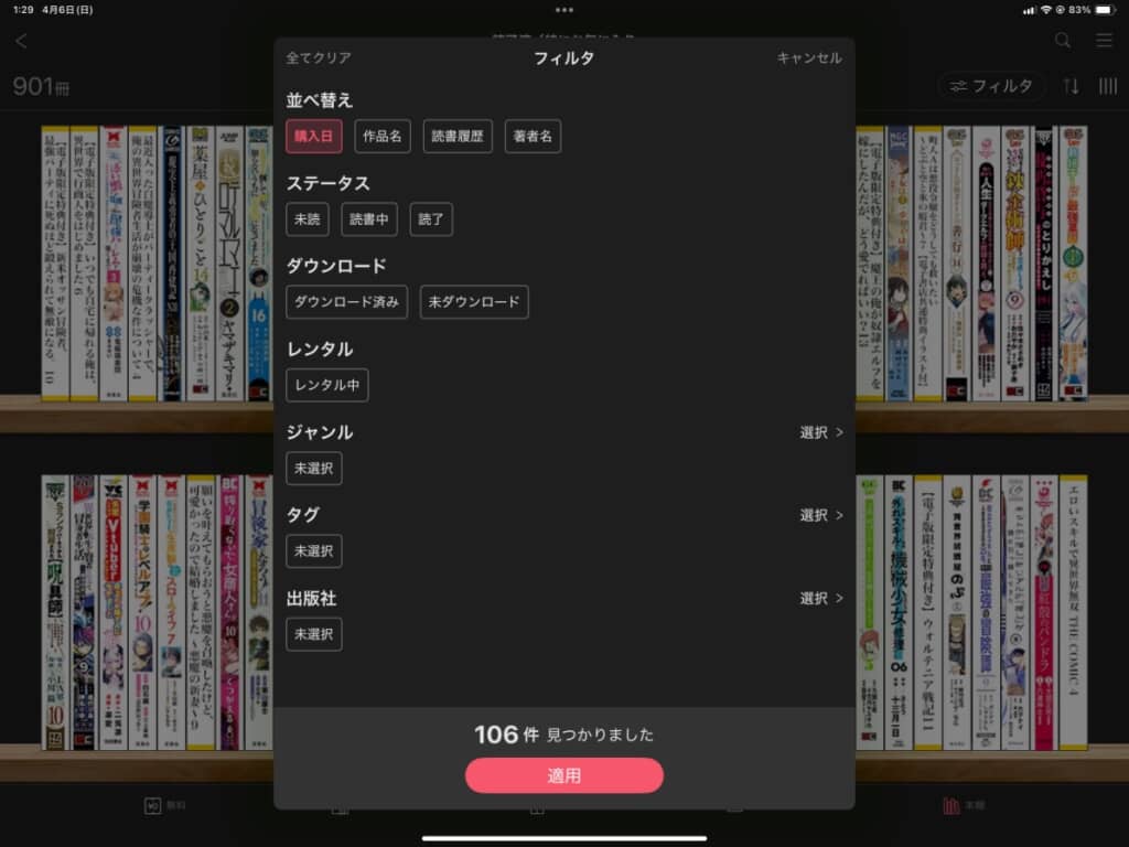 ソートやフィルタが使えるという面では、リアルな本棚よりも便利