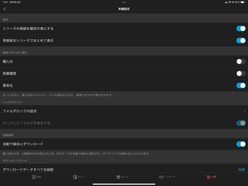 購入した書籍の背表紙一覧は、条件でフィルタをかけて該当するものだけを表示することもできます。こういった点はリアルな本棚より便利ですね。