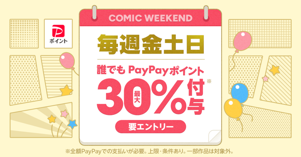 毎週金土日にPayPayで買うとポイント付与率が高くておトクな「コミックウィークエンド」(※取材当時)25周年記念イベントでは、最大40%付与日も!