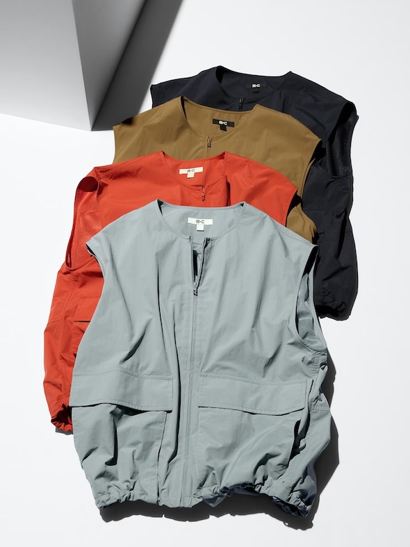 注目が集まっているのは「フルジップベスト」です。レイヤリングでコーディネートの幅が広がる、リラックス感のあるコクーンシルエットが特徴。裾のドローストリングでシルエットを変更することもできます。