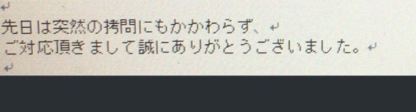 どうやら、本来は「訪問」とするべきところを「拷問」と書いてしまったようです。頭文字の「ほ」を「ご」に一文字打ち間違えて変換し、大きく意味の異なる単語に。思わずクスっとなるミスですが、取引先の人はどんな反応だったんだろうか……。
