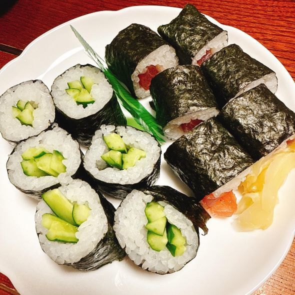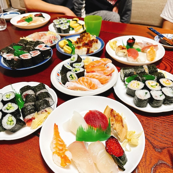 握りずしや巻きずしなど、豪華なおすしが卓上にずらりと並んでいます。どれもおいしそうですが、何よりうれしいのはその気持ち。Maiさんは「これは世界で一番おいしいおすし」と感激のコメントを残しています。一生忘れられない味になりそうですね!