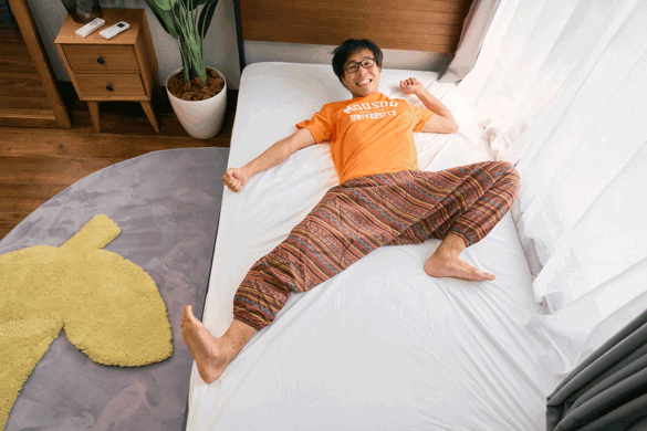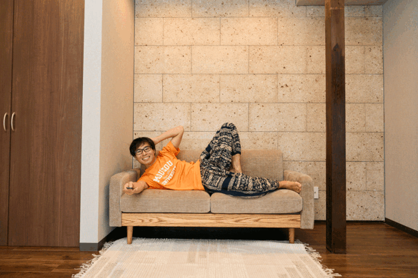 私の求める夏の家着の条件を、ゲオのサルエルパンツは全てクリアした。というか、想定以上のものだった。最高なのだ。動きやすいというのもポイントで、ストレスを感じない。どのくらい自由かと言えば、下記のように自由だ。