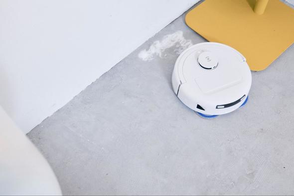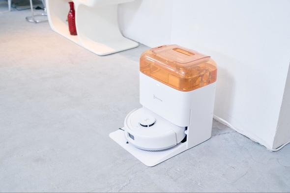 ステーションは高さわずか38.5センチ、本体のサイズは直径28.6センチとコンパクトで、ひとり暮らしの部屋でも邪魔にならない大きさです。狭いスペースもスムーズに走行でき、8000Paの強力な吸引力でゴミをお掃除。それでいて、スタイリッシュなデザインでインテリアの邪魔になりません。ゴミ吸引のほかに水拭き機能もついているので機能性も◎。