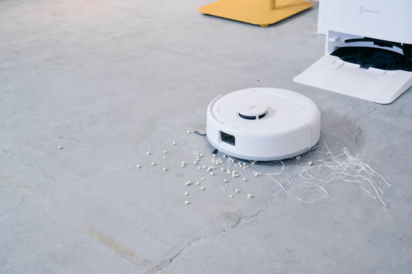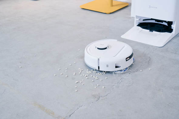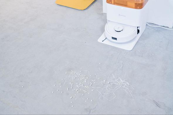 用意したゴミが多かったので時間がかかっていますが、強力なパワーで難なくゴミを吸い取ってくれました。すごいぞ「DEEBOT mini」。静音設計で稼働時の音も抑えられており、うるさく感じることはありませんでした。
