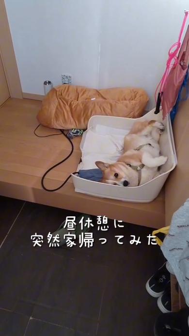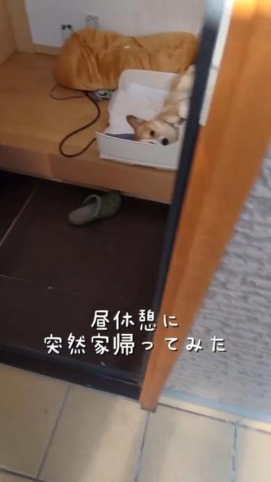投稿したのは、11歳のメスのコーギーのチリちゃんと子ども達の日常を記録している飼い主さん。以前にも、チリちゃんが飼い主さんを寂しそうに見送ったあとに態度が急変する姿が話題となりました(関連記事)。今回は、飼い主さんがいつもは帰らない昼休憩中に、突然帰宅したようです。