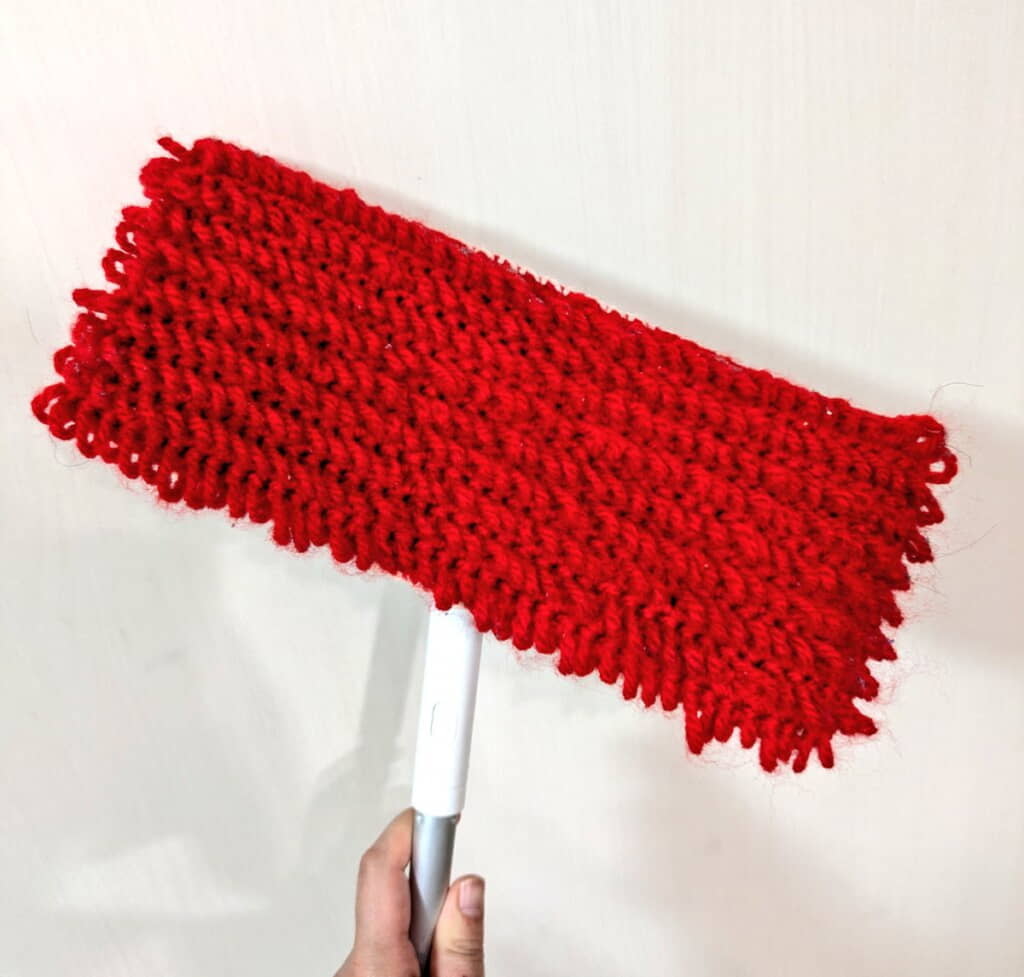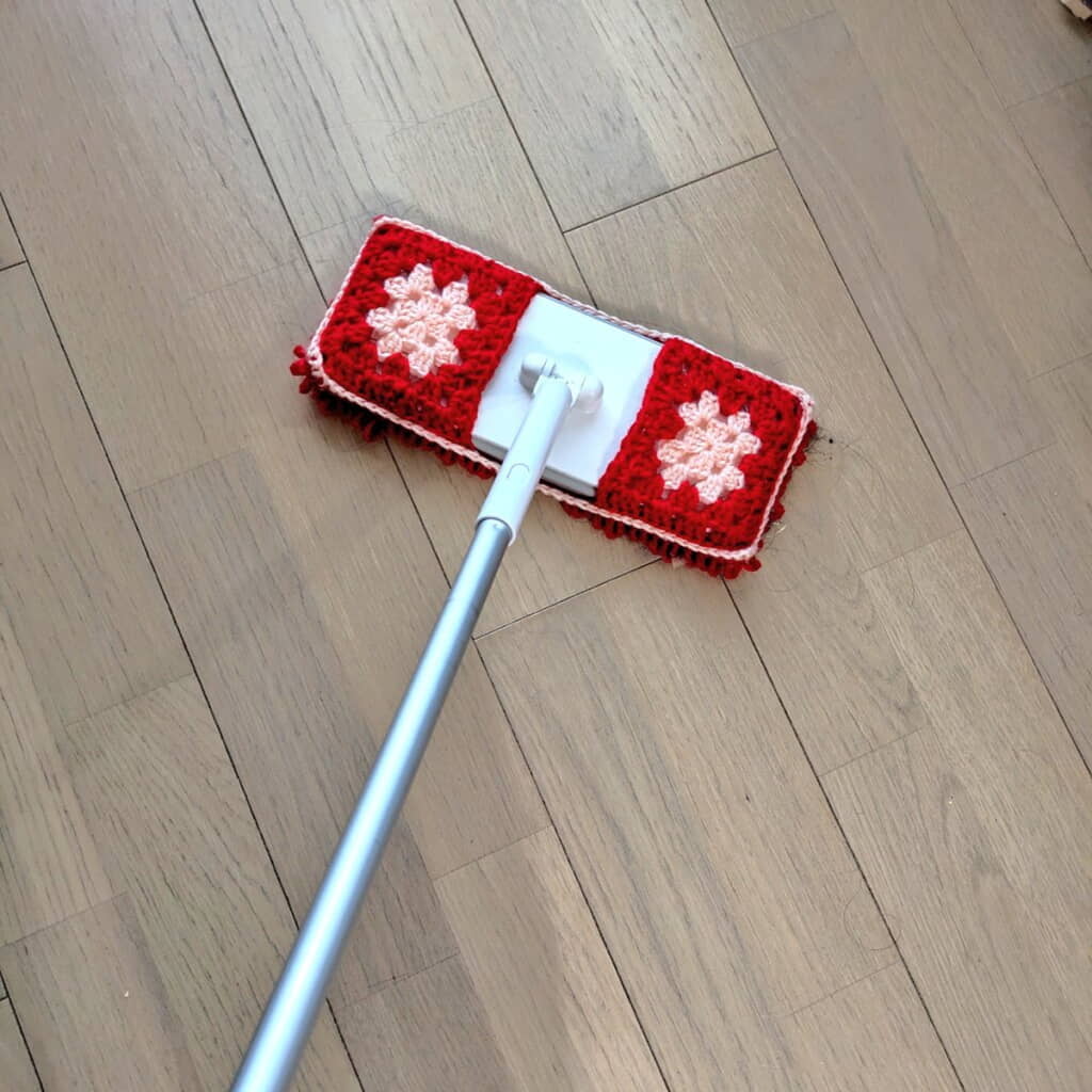 裏側をループ編みにしていますが、ワッフル編みでも良さそうとのこと。掃除機でゴミを吸ってから水洗いすれば、モップに付着した汚れもきちんと落ちるんだとか。