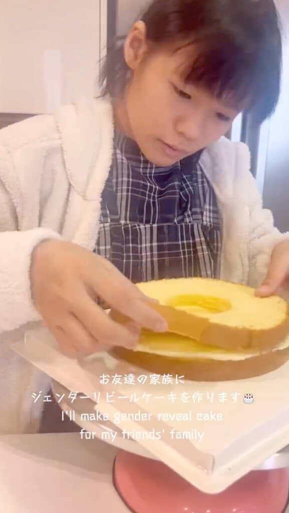 今回は、友達の家族に向けたジェンダーリビールケーキを作っていくようです。ジェンダーリビールケーキとは赤ちゃんの性別をお披露目するためのサプライズ用ケーキで、カットしたときの中身に応じて性別が分かるようになっています。