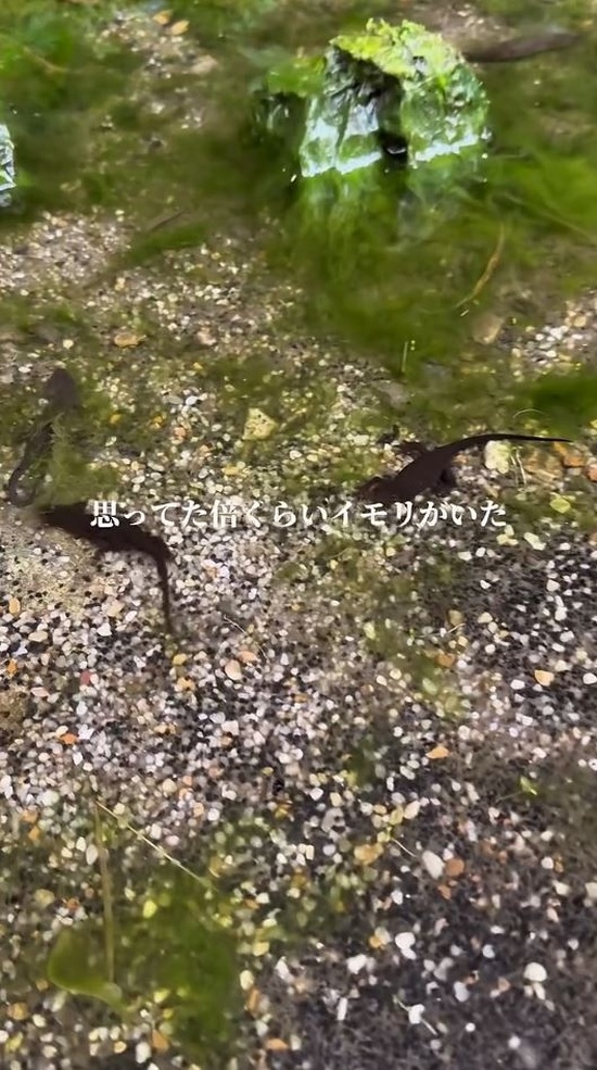 ピカピカになったビオトープに水を入れると最初はグレーっぽい色に。ですが最終的にはクリアになり、久しぶりに底が見えました。これは気持ちがいいですね! さらにビオトープには、板取さんが思っていた倍ほどの数のイモリが生息していたそうです。