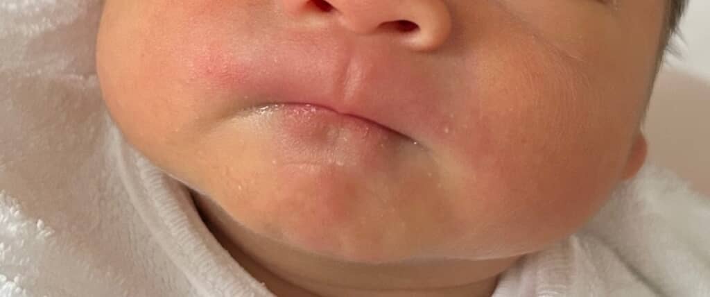 のんさんの息子ちゃんは、ミルクをあげた後に「疲れた、もう飲ますな」と言わんばかりにお口をムッとしています。赤ちゃん特有のぷにぷにしたほっぺとは反対に、ギュッと固く閉じた小さなお口がかわいい!
