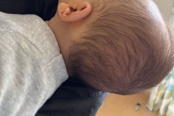 パパさんが作ってくれた粘土ケーキを前にご機嫌