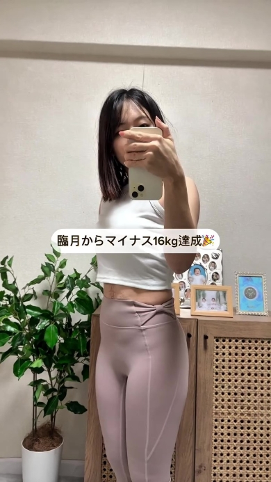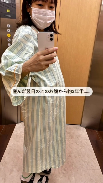 出産後、yasukaさんはダイエットに取り組み始めました。2年半かけて徐々に体重を落とし、マイナス16キロのダイエットに成功。おなかはすっかり引き締まり、健康的なボディーラインがすてきです。