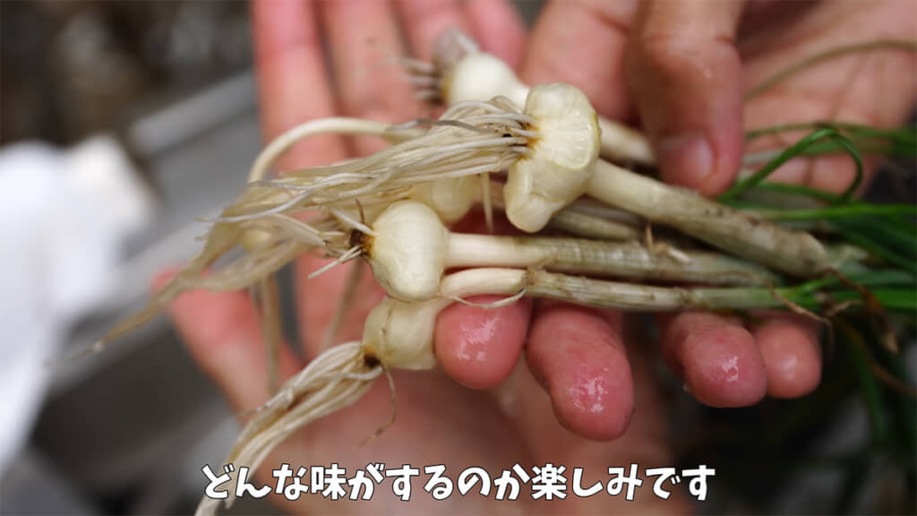 さらに翌日。この日は山菜を見つけたため、採りに行くことにしたようです。なんでも、3月から図鑑を見ながら散歩していたところ、とても身近な船引場で「ノビル」という野草を発見したのだとか。この日食べる分だけを採取し、洗っておくことにしました。