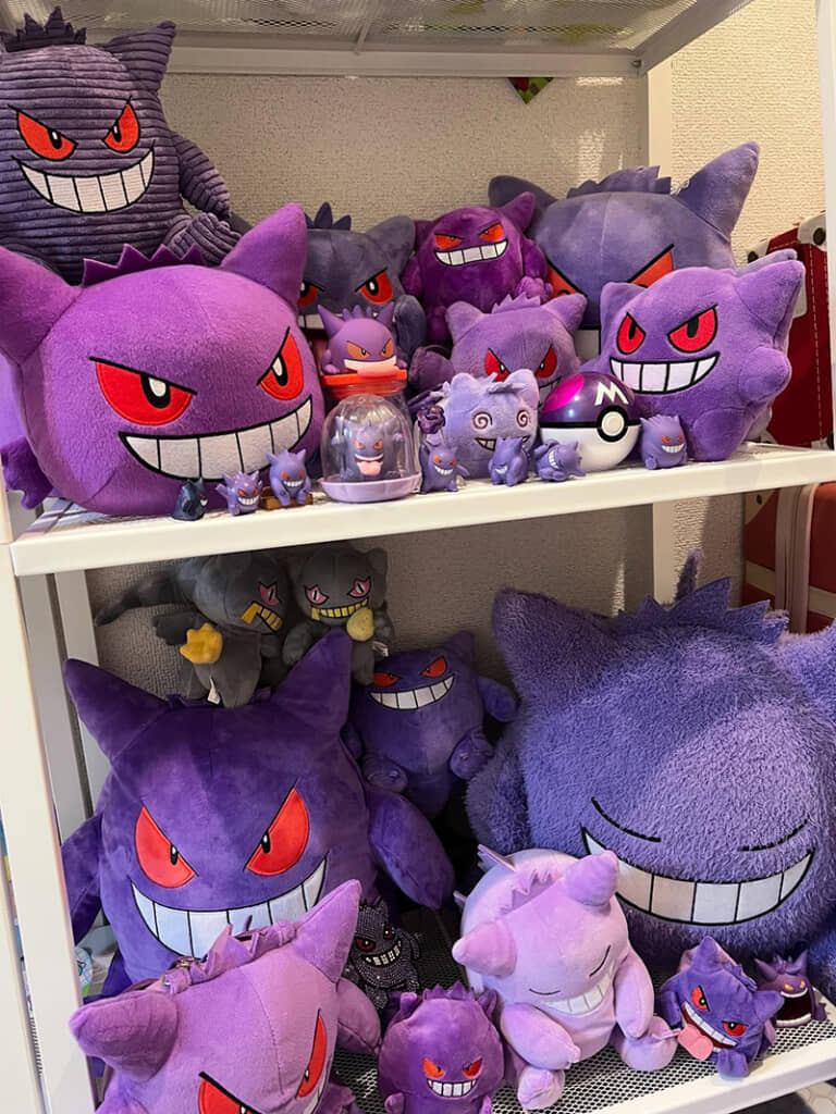 この日、3歳の息子が「ママのおもちゃ部屋で遊んでくるね~」と向かった部屋には……のぐまいさんが集めたぬいぐるみやフィギュア、キャラクターグッズがぎっしり! 縦長の空間の壁に設置された棚には、ポケモン、特撮ヒーロー、女の子向けアニメなどのコレクションがずらりと並んでいます。