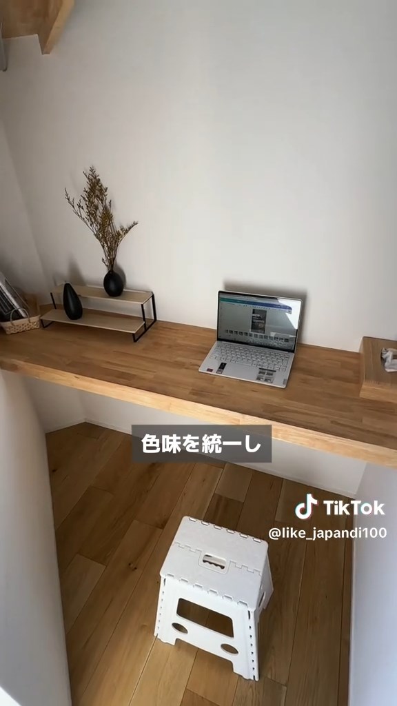 すっきりとおしゃれな印象に。次は代用品の踏み台を椅子に買い替えるそうです