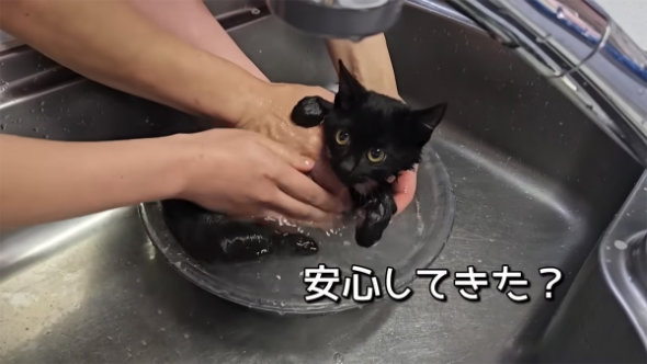 始めこそ逃げ腰でしたが暴れることもなく、だんだんとおとなしく。顔を洗ってもタオルで拭いても、ドライヤーをかけても平然としており、そのお利口さんな姿には「キョトン顔がたまらんw」「まん丸お目目が可愛すぎて」「この子は賢い子ですね」とほっこりした人の声が続々。また保護した飼い主さんには「本格的に寒くなる前に保護してくださり、ありがとうございます」といった感謝や、「大人しい黒ちゃんですねぇ、幸せになれよー」とちろるくんを応援する声が多数寄せられました。