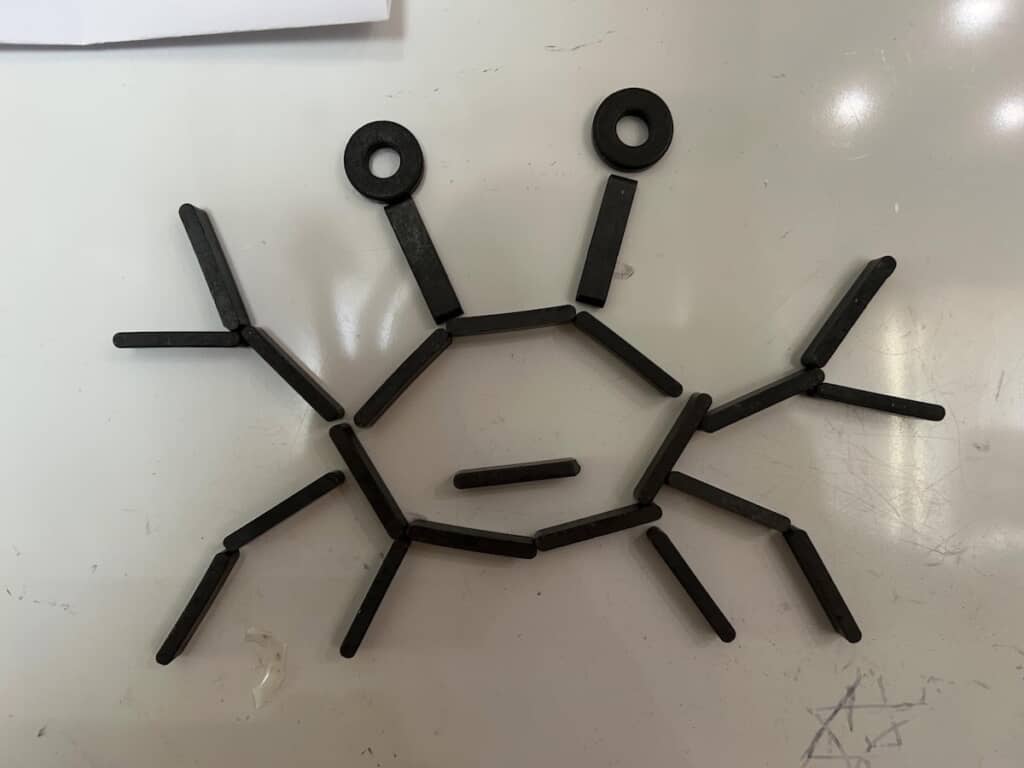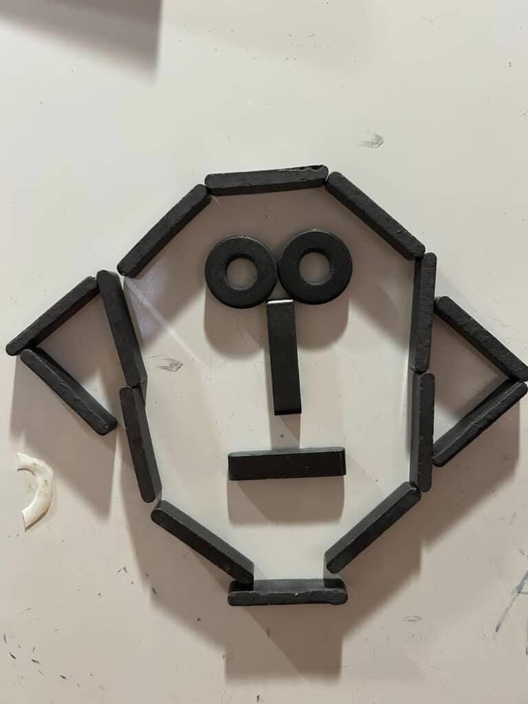 息子さんが磁石で作ったのは、カニや人の顔、「スーパーマリオ」シリーズのキノコなどなど。使われている磁石は棒状のものと円形のものの2種類だけですが、限られた素材で的確に対象の特徴を再現しています。見事な美的センスだ……!
