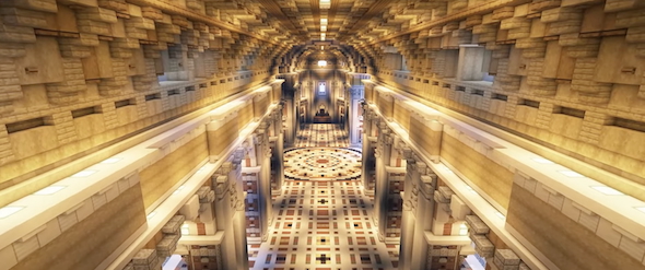 最後に大きなドームの内側の内装を行い、床全体に色違いのタイルで柄を描くと、ゴージャスでありつつ神聖さの感じられる空間が出来上がりました。すごすぎる……!