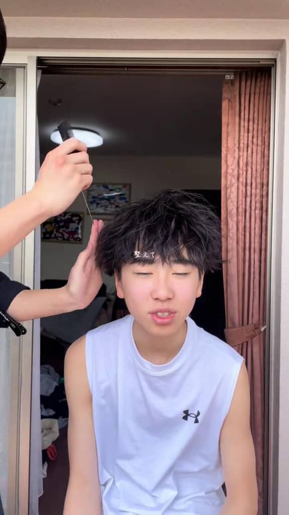 動画を投稿したのは、美容学生でいろいろなヘアセットの動画を投稿している「いちやまかんた(@kanta_ichi)」さんです。かんたさんがヘアセットさせてほしいとお願いすると、積極的に協力してくれるという14歳の三男。今回はドライヤーで髪の毛を整えた後、無造作マッシュヘアにセットしていきます。