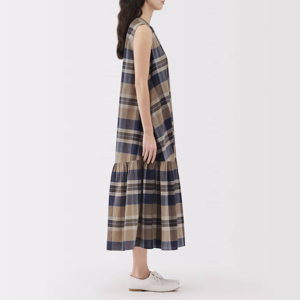無印良品の「婦人 マドラスチェック スリーブレスワンピース」(画像引用:無印良品 公式サイトより)