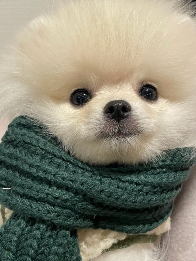 続いては、さらに成長した姿です。モスグリーンのマフラーを巻いて凛々しい表情を見せていますが、愛らしさは変わらず。しかし、これまでの写真と比較すると大人になったなと感じます。