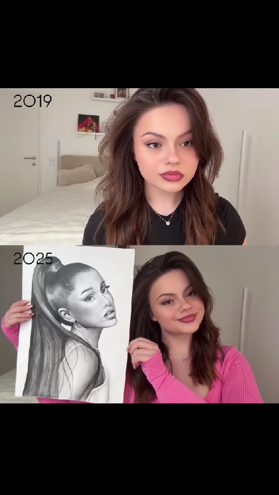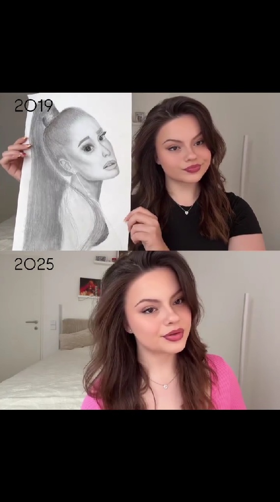 2019年に描いたアリアナ・グランデの絵と2025年に描いた最新版の絵を比較した動画が、Instagramに投稿されました。動画は記事執筆時点で1175万回以上再生され、31万1000件以上の“いいね”を集めました。