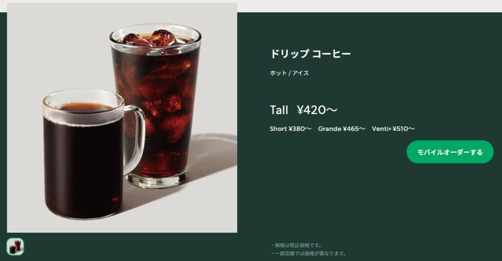 スターバックスのドリップコーヒー。追加料金を払うことでディカフェに変更可能(公式サイトより)