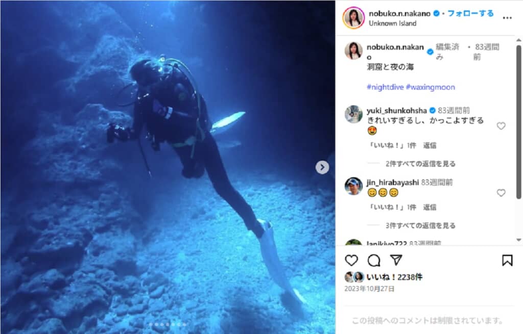 ダイバーとしての顔も持つ中野さん(画像は中野信子Instagramから)