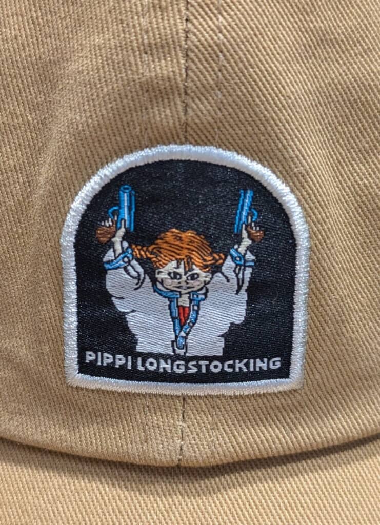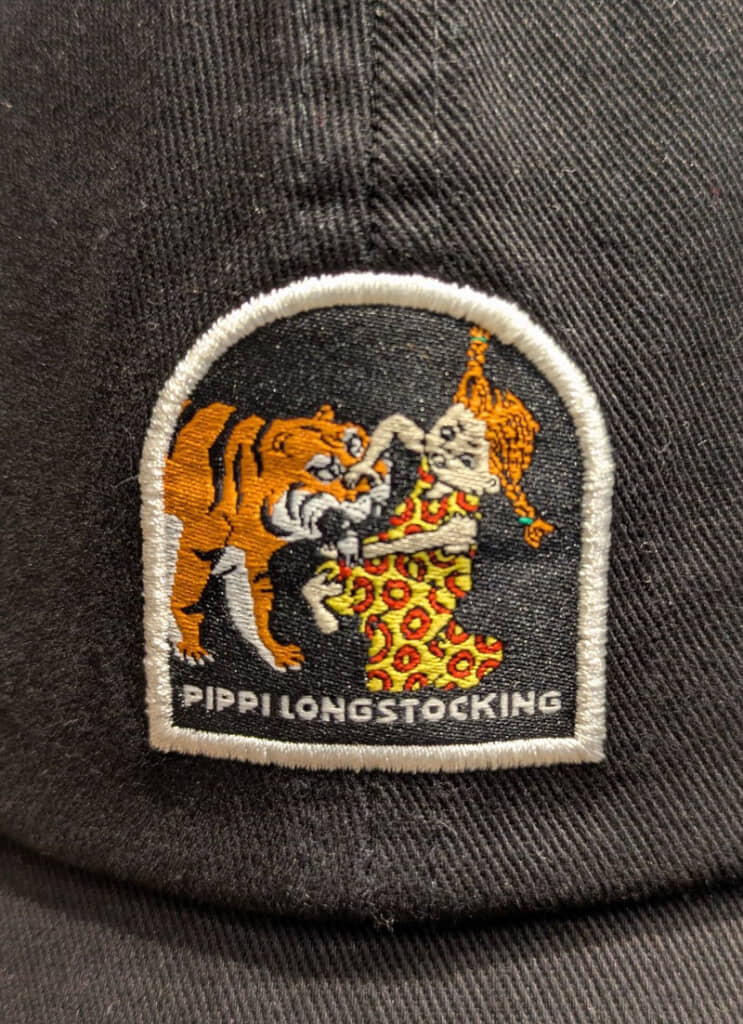 特に引きつけられたのが、名場面(?)を描いたワッペン入りのキャップ。ピッピが徒手空拳で虎と戦ったり、勇ましく2丁拳銃を掲げたりと荒ぶり倒しているのです。豪傑すぎる……!
