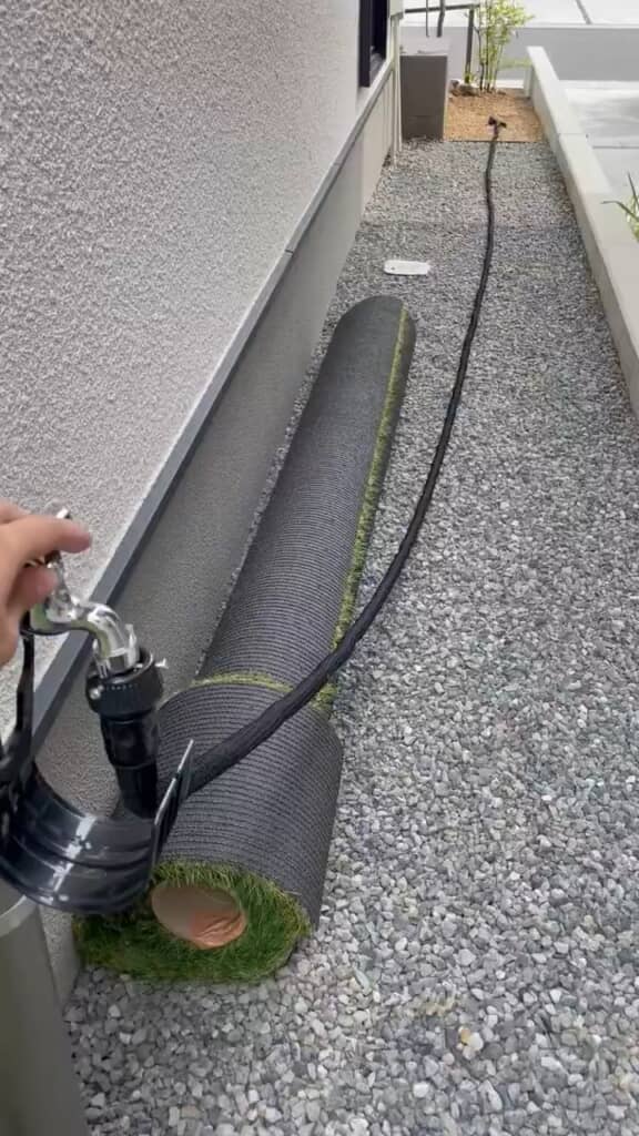 その正体は、ネット等で「伸びるホース」といった名前で売られている品物。水圧を受けると、長さが3倍ほどに伸びるのが特徴です。
