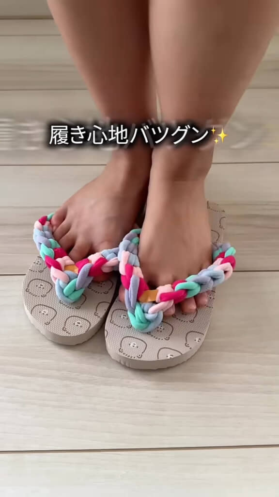 実用的なビーチサンダルのリメイクに、コメント欄には「機能的にも見た目的にも最高な上、100均で材料そろうとか神すぎる!」「これなら痛みもなく自分好みにできていいですね!」「天才でしょ」「ゆるゆるなビーサンもちゃんと履けそう」「素晴らしい!」「もはや作品」など、称賛の声が集まりました。
