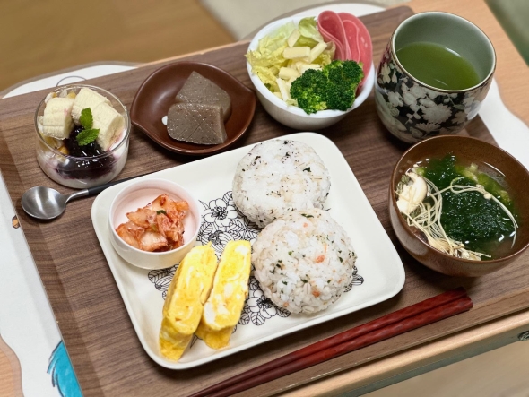 投稿したのは、69歳の母が作るごはんを公開しているアカウント「やすべぇのごはん」(@yasubeee_gohan)さん。「おにぎりと卵焼きが最高すぎる!」と絶賛し、ある日の朝ごはんを公開しています。
