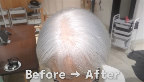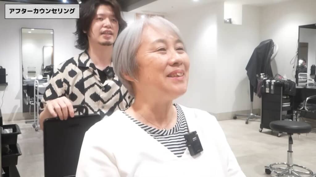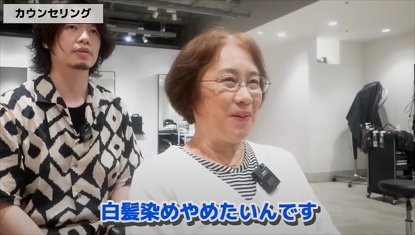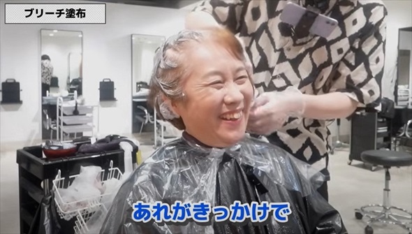 ブリーチ剤を塗りながら施術を受けることにした動機を聞くと、女性は以前から白髪染めをやめる機会をうかがってはいたものの、きっかけになったのは過去のYouTubeの事例とのこと。とても印象深い動画だったようです。