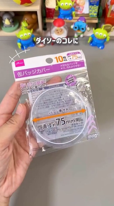 使うのはダイソーの缶バッジカバー/直径約75ミリ