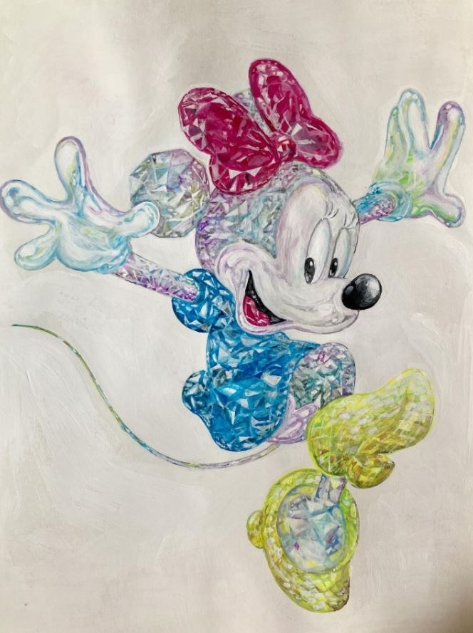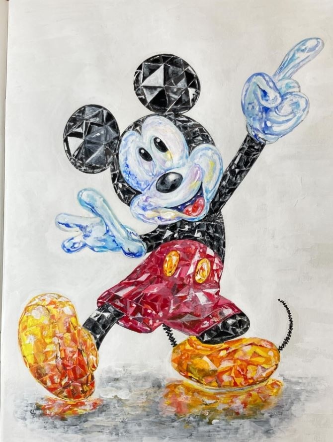 こうして完成したのは全身クリスタル仕様のミッキー。塗り絵の域を超えた驚きのクオリティーで、質感や光の屈折まで丁寧に表現しています。なおyabukiさんによると「宝石とかスワロとかの煌めきが大好きなので、表現できるかな?と思いやってみました」とのこと。そして2日間ほどで完成させたといいます。