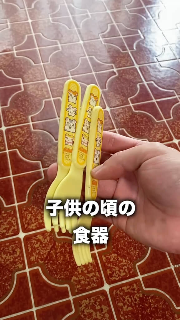 引き出しからは、未開封のネギカッターやヤクルトのフタを開ける道具、さらに粉ミルク用のスプーンやタチバナさんが子どもの頃に使っていたキャラクターの食器などが続々と登場。懐かしいものの出現に思わず手を止めてしまいます……。しかし家族がいないこの日が断捨離のチャンス! 使っていないものはしっかりと手放していきます。