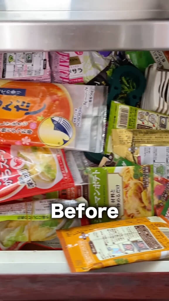 今回は家族が見ていないうちに、気づけばものであふれていたというキッチンの引き出しを片付けていきます。まずは中のものをすべて取り出していくのですが、そこにはなぜか大量のつま楊枝や賞味期限切れの調味料が……。いろんなものが入っていたため、一旦ジャンル別に仕分けることに。