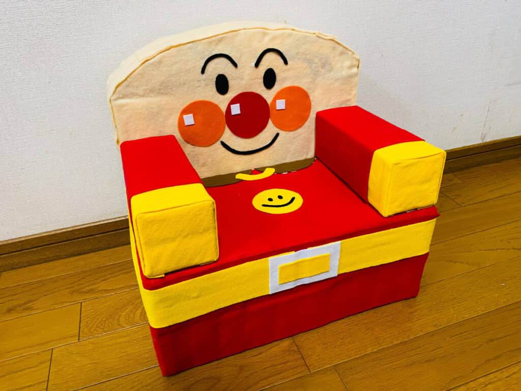 完成したアンパンマンのキッズソファ(画像提供:hnka_29/@hnka_29さん)