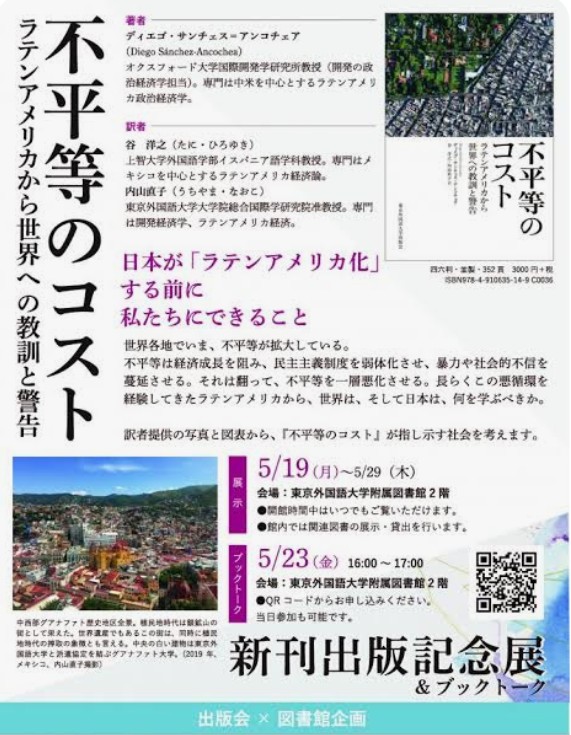 同イベントは、不平等が悪化するラテンアメリカの事例を紹介した本『不平等のコスト――ラテンアメリカから世界への教訓と警告』(東京外国語大学出版会)の出版を記念して開催。「不平等という普遍的な社会問題に対する理解を深めるとともに、ラテンアメリカの実態から、日本に暮らす私たちに何が学べるかを探求する」ことを目的に、関連写真や書籍などの資料が展示されていました。