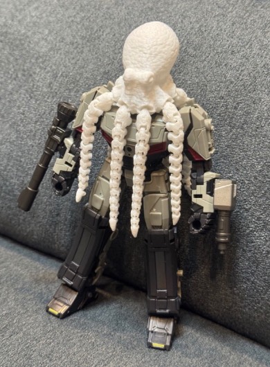 なお、タコの胴体には大きな穴が。コンティ303さんはこれをいろいろなフィギュアの頭に被せて遊ぶ様子も紹介しています。タコに乗っ取られたみたいで面白い……。